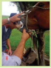 perfiladas no Departamento de Salto, Uruguai. Protegiam-se da chuva
